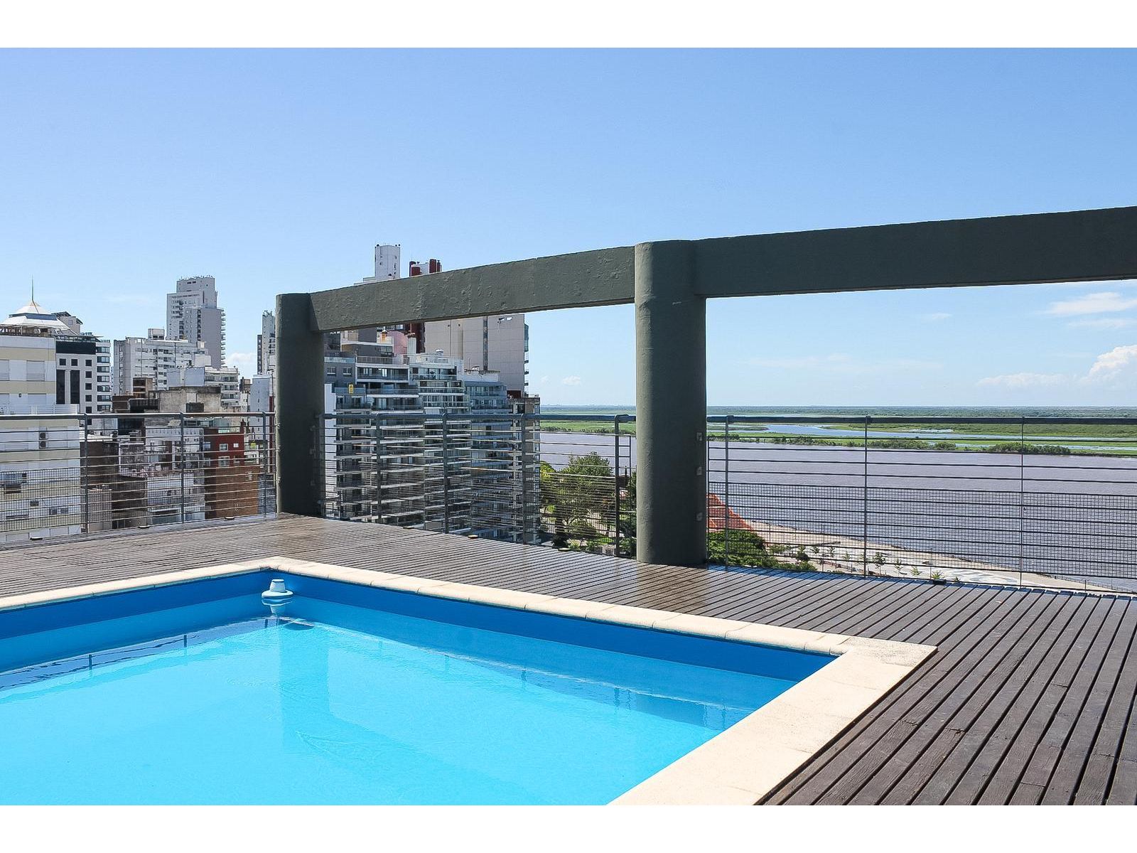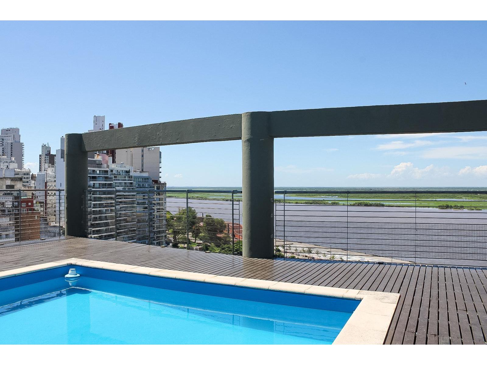 Edificio ubicado a metros de la Costanera Río / Parque España, sobre calle San Martin al 400. 5TO piso A , Alquilado hasta 09/26 COHERA DOBLE INCLUIDA EN EL PRECIO Departamento 3 dormitorios, 2 baños, cocina comedor, amplísimo living comedor, hermoso balcón corrido aterrazado, recorriendo el frente del edificio al Norte. Piso de madera maciza en living y dormitorios. Piso porcelanato en cocina comedor y baños. En altura, con espectacular vista Río e islas. piscina, parrilleros, solárium. La unidad se vende con una cochera doble en subsuelo del edificio más una baulera amplia. Además de uso común cuentan los copropietarios con el salón de usos múltiples ideal para eventos importantes.